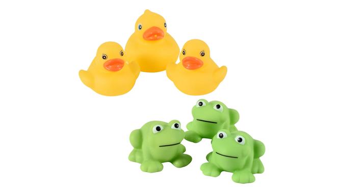 Make bath time with the kids less stressful with these adorable (and affordable) 3-count sets of bath toys featuring yellow ducks and green frogs.