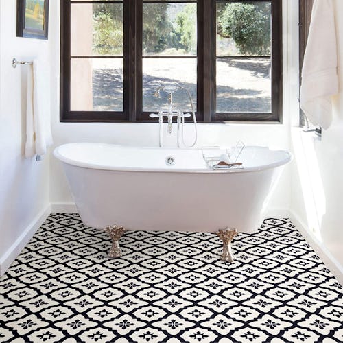 Use this 10-pack of peel-and-stick floor tiles to give your bathroom a cheap but seriously impressive makeover. The vinyl tiles measure 12-inches-by-12-inches and have a textured, semi-gloss finish. The graphic black and white print makes a striking design statement. What’s more, there’s no grout or special tools needed to install the set.