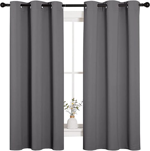 In addition to blocking 90% of light, this set of two blackout curtain panels helps maintain room temperature and reduce noise. They are made from a soft polyester blend and feature six silver grommets each, so there’s no need for curtain rings. The panels are washer and dryer-safe, and can either be ironed or steamed for a wrinkle-free finish.