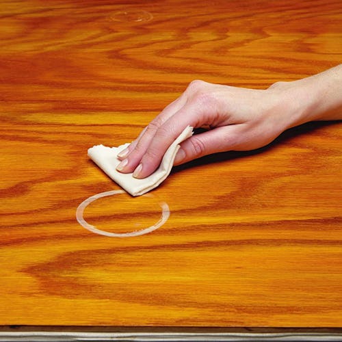 Use this genius watermark remover cloth to get rid of unsightly water rings and haze on finished, sealed wood surfaces. The cloth is reusable as long as it is sealed properly after use. It’s also effective in hiding surface scratches and blemishes, removing latex paint and most permanent marker stains, and even polishing metal and chrome surfaces.