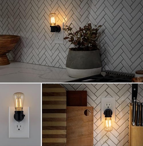 Replace boring night lights with these cool vintage-inspired Edison light bulb night-lights that come in a set of two. They give off a warm white glow for a cozy effect and offer two brightness settings (low and high) to choose from. The plug-in night lights have a built-in sensor that automatically turns them on and off, but also have a button that manually turns them off.