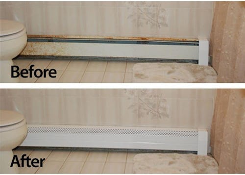 Hide a rusty old baseboard heater with this crisp white baseboard heat front cover. It’s 4 feet long, rust-proof, and designed to fit directly over an existing baseboard heating unit. The cover doesn’t have any sharp corners and is easy to maintain since it can be cleaned with common household cleaning supplies.