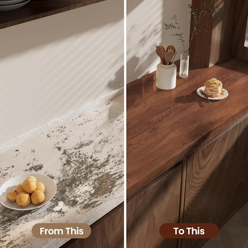 Spruce up an old countertop or piece of furniture with this self-adhesive wood contact paper. The thickened PVC vinyl is waterproof and features a realistic wood-grain-inspired texture. The contact paper has grid-lined backing to help make straight cuts. While it’s self-adhesive on its own, you can also heat it with a hair dryer before you stick it down for enhanced adhesion.