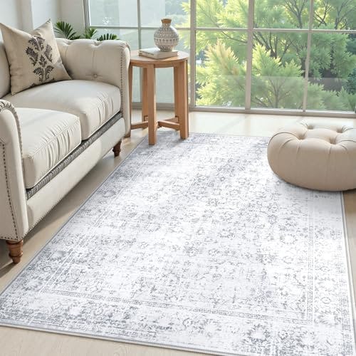 LIVEBOX Washable Area Rug 4x6 - Boho Oriental Low-Pile Indoor for Living Room, Bedroom, Dining Room, Office - Foldable Gray Turkish No-Shedding for Camper, Foyer