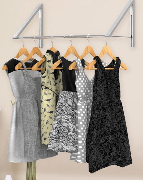Hang this collapsible laundry drying rack to maximize space in a small bedroom or laundry room. It’s made of heavy-duty aluminum that looks sleek and won’t fade or corrode. The rack is strong enough to hold 60 pounds and folds down flat against the wall when it’s not needed.
