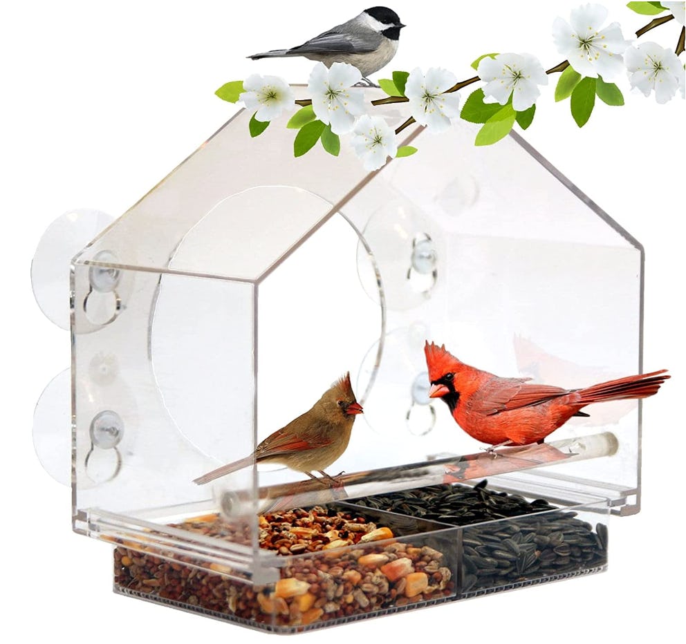 “Got this to stick on my living room window to amuse our cats,” said one reviewer. “Our cats wait for sunrise so they can watch the birds feed, and sit by the window much of the day. Worth the price, for sure!”