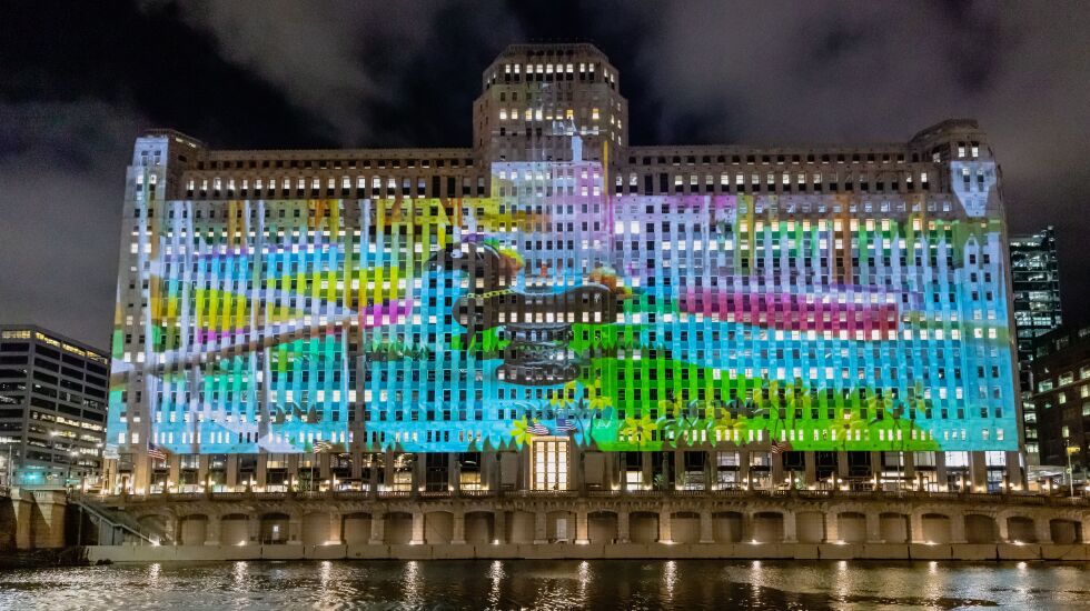 - The spring season of Art on The Mart, the digital art project that transforms The Mart into a very large canvas, kicks off April 14 with a new commission by artist Derrick Adams entitled “Funtime Unicorn: Ruby Rides Through Four Seasons,” which celebrates Black joy, love and play. Also April 27-May 14, artwork by Chicago Public School students will be on view. At 8:30 and 9 p.m. nightly; the best place to view the art is from the Chicago Riverwalk, on Wacker between Wells and Franklin, where accompanying audio can be heard. Visit artonthemart.com.