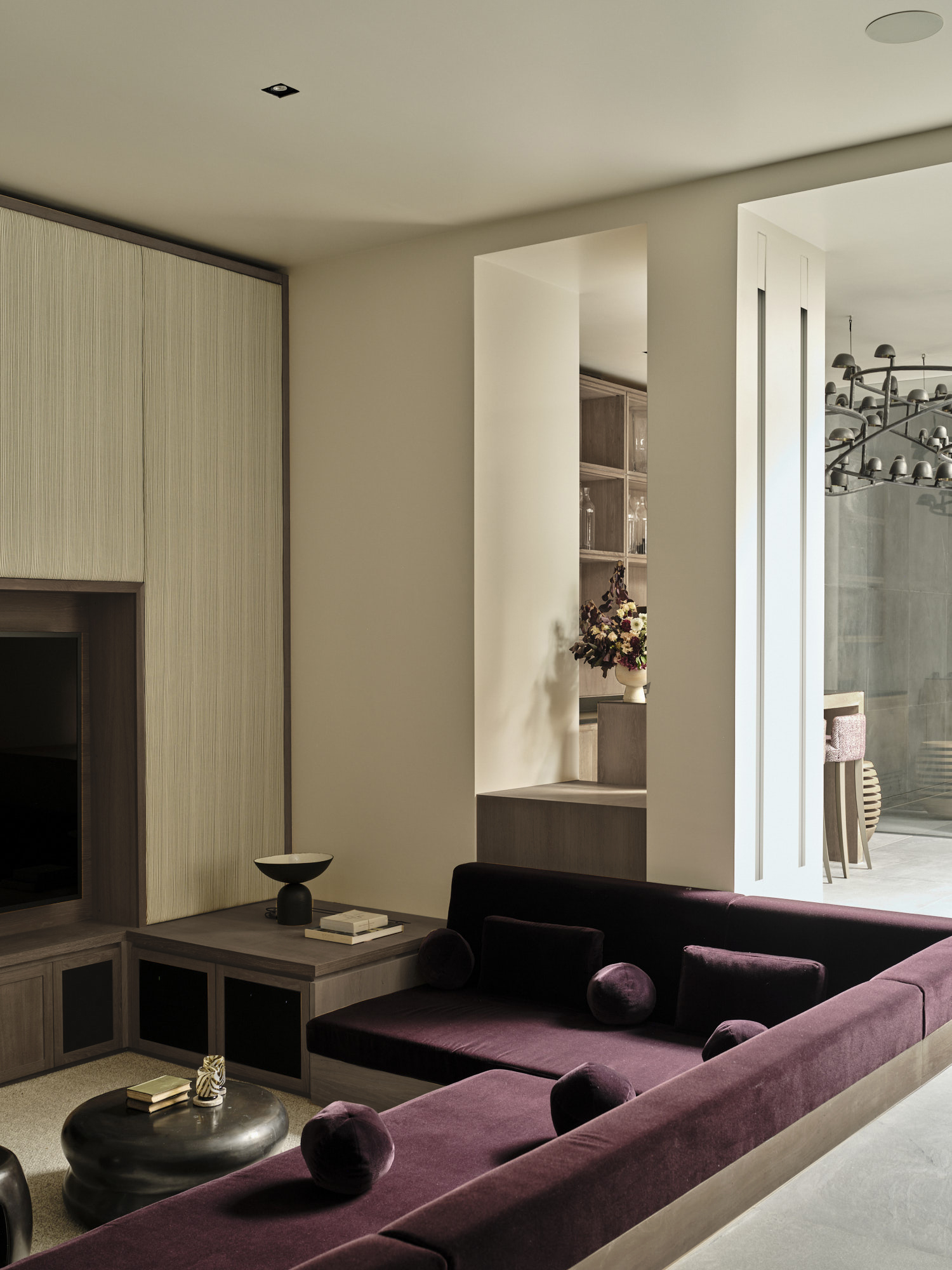 On the lower levels, Banda delivered a full-scale amenity wing comprising a pool, sauna, gym and cinema, all of which sit below garden level. These spaces maintain the same tactile serenity found upstairs, mitigating their utilitarian purpose with natural stone, warm timbers and carefully calibrated lighting