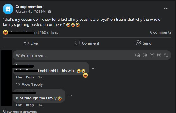 Meanwhile, "girl cousins" were also wreaking havoc on the page, as they dominated comment sections in a bid to defend their named family members.