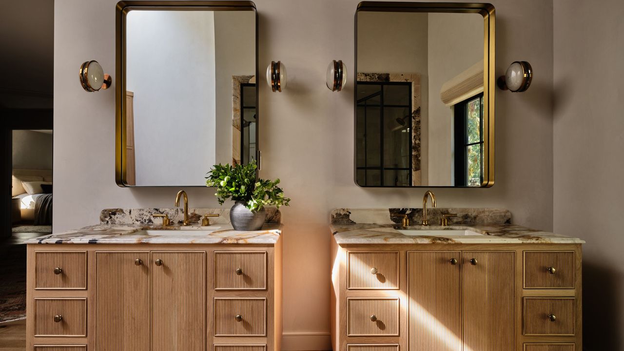 But, as much as they wanted to keep this feature intact, this did not come without its struggles. "Its presence led to some angled walls and carefully placed, swagged light fixtures, but the effort was well worth it: the skylight fills the space with warm California sunlight, creating a bright, uplifting atmosphere inside the bathroom," explains Christie.