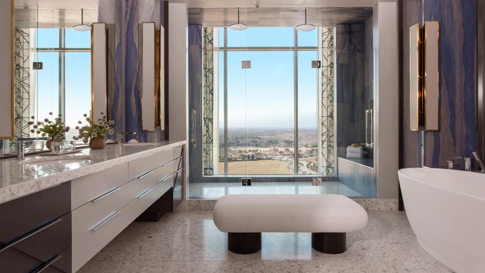 Just minutes from Orlando International Airport sits a 17-square-mile community known as Lake Nona. This past December, the science- and medicine-focused enclave welcomed an upscale lifestyle property that sets a new standard for what it means to be a hotel with cutting-edge technology. For starters, Lake Nona Wave Hotel is wrapped with View smart windows that dynamically tint in response to the sun and block 99 percent of UV light. And while all of the 234 accommodations are equipped with techy features like voice-automated controls and Toto smart toilets, it’s the Well+ech rooms that truly shine.