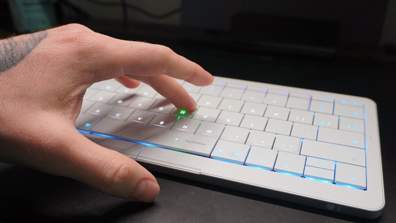 At first, the CLVX S felt a little weird. My subconscious kept reaching for a mouse to my right, but then I started to swipe across the keys. Touch response is rapid and responsive, and there’s even multi-touch on here — all inputs of which are visually highlighted by sweeping RGB that follows your fingers around.