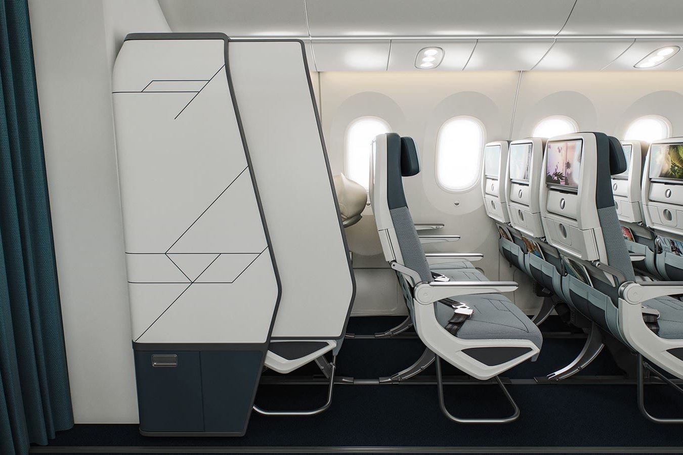 However, the company aims to change this with its “SkyNook” design: a semi-secluded retreat with a privacy divider and an extra console to use as a table, bassinet or pet carrier.