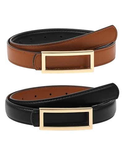 AWAYTR Women Reversible Leather Belt - Two-in-One Women Fashion Skinny Belt for Jeans with Golden Buckle (Black/Brown,100cm)
