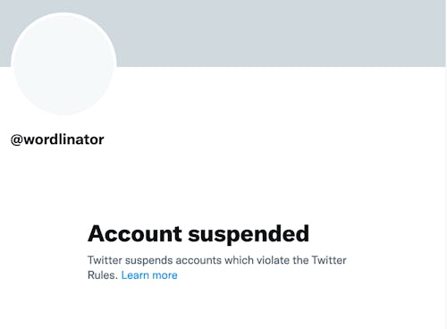 There’s some good news here, though, which is that the Wordlinator account has been suspended just days after it first began its witch hunt. But it’s also been revived more than once already. Tread carefully, Wordlers.