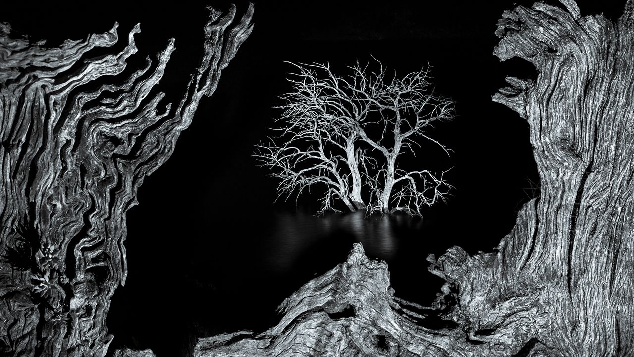 Gonzalez Ahumada explains, "On the edge of the Zahara de la Sierra reservoir in southern Spain, the remains of a fallen tree take on the appearance of a gnarled, talking face. Beyond it, standing in the dark water, another dead tree rises like a ghostly apparition – its counterpart on the shore seemingly praying for its soul.