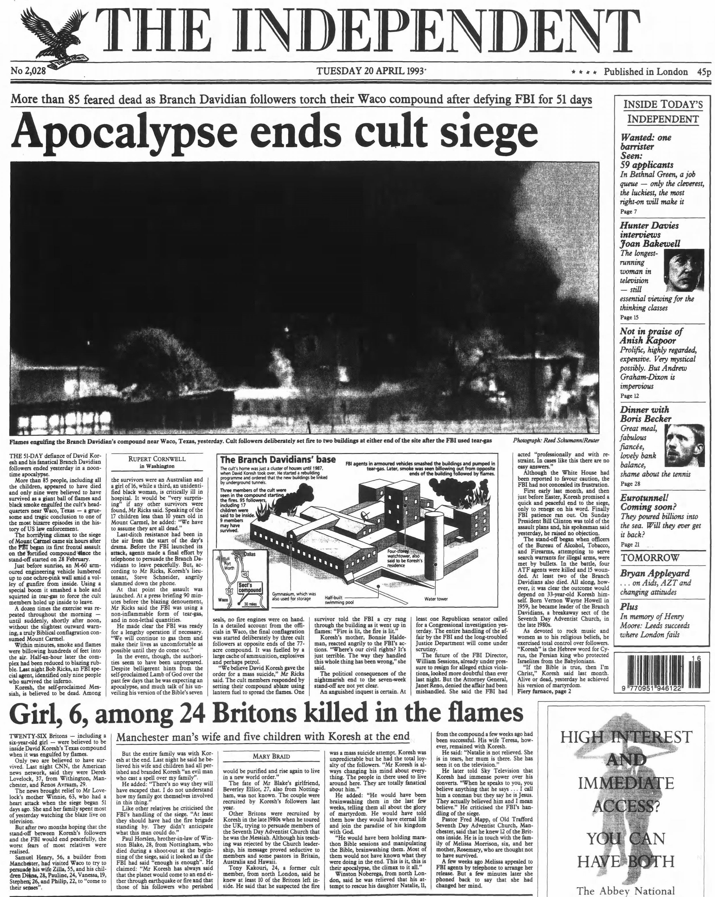 20 April 1993 - Waco siege ends in 'apocalypse'