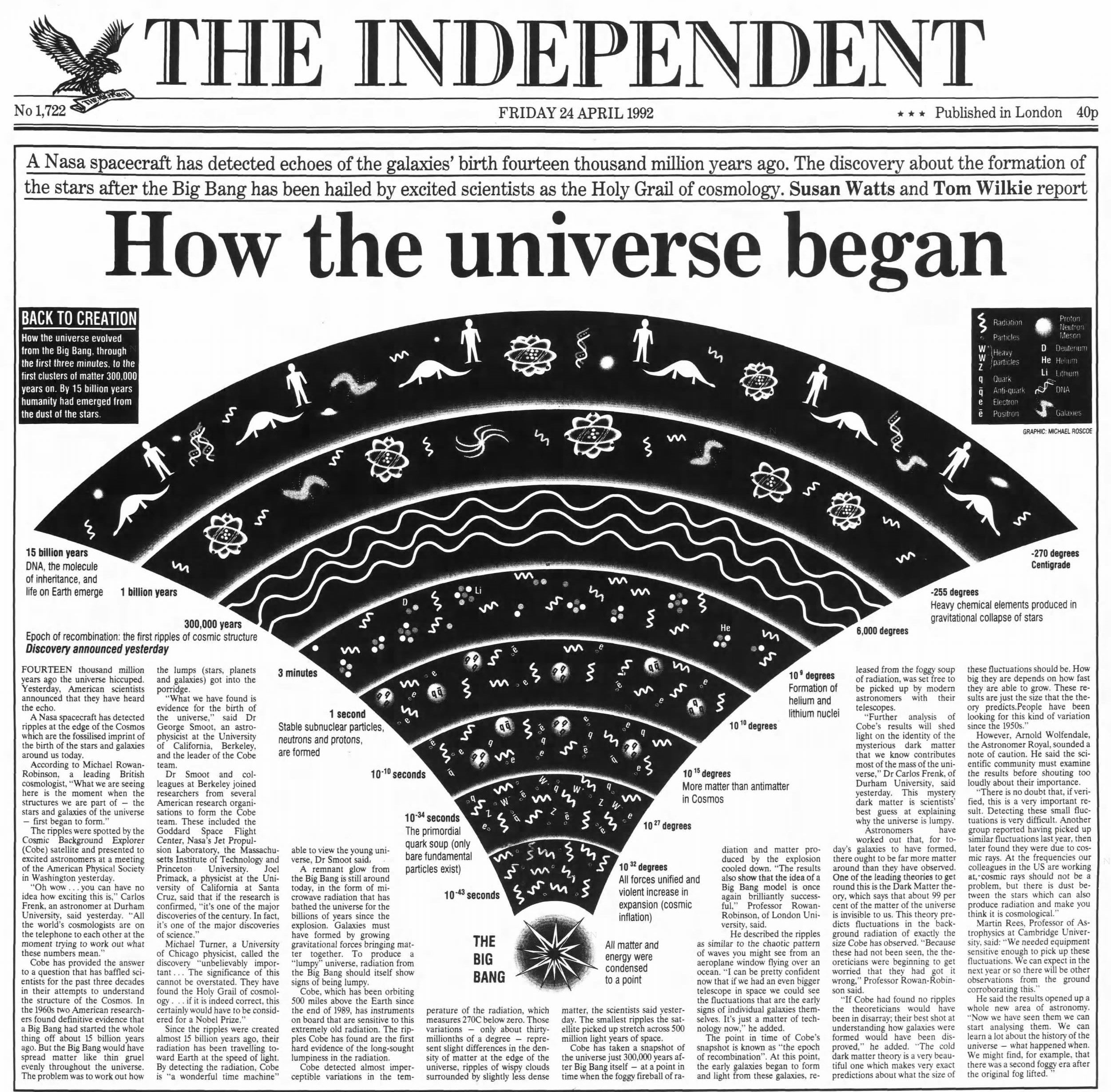 24 April 1992 - NASA detects 'Holy Grail' echoes of the Big Bang
