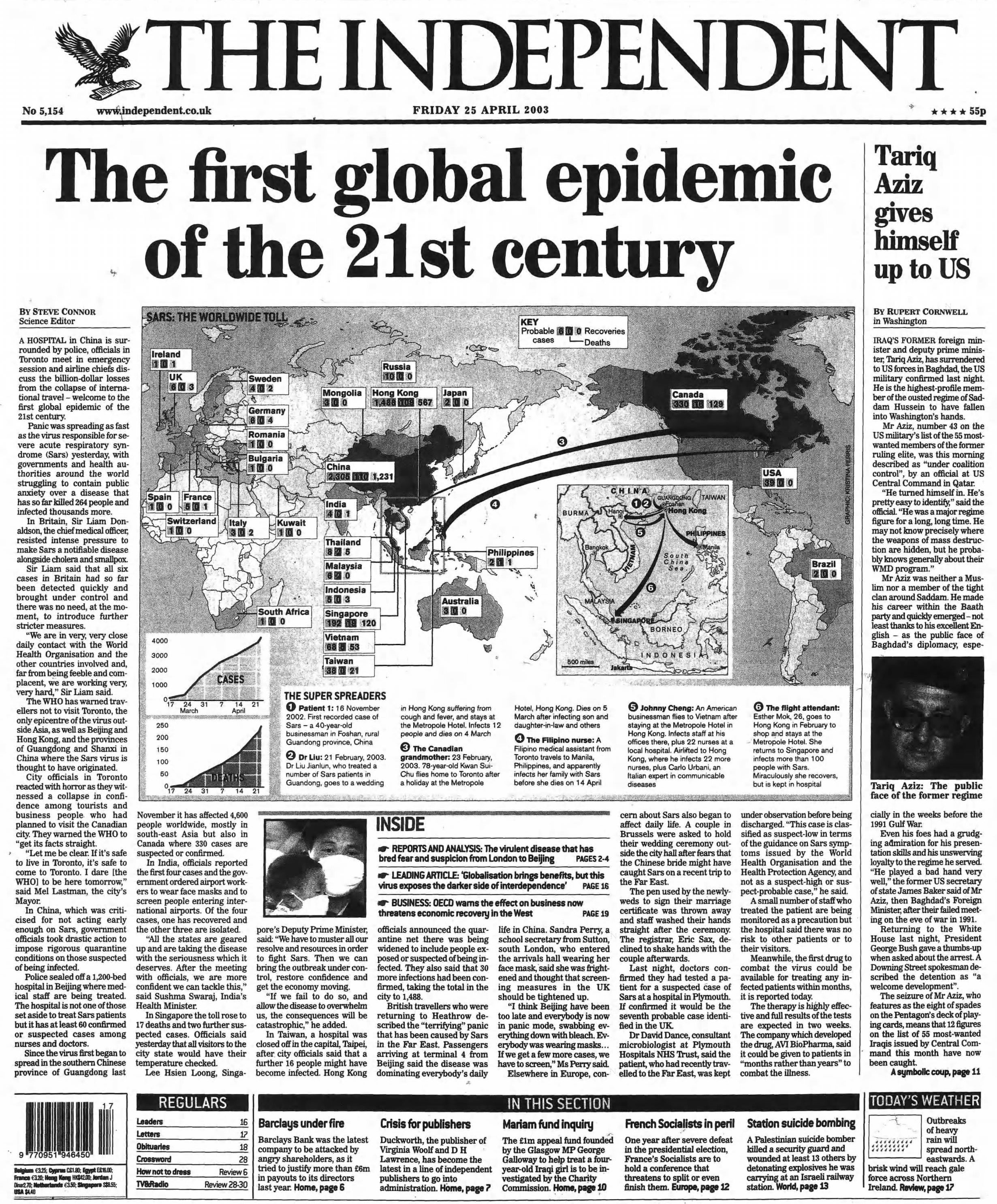 25 April 2003 - SARS becomes global pandemic