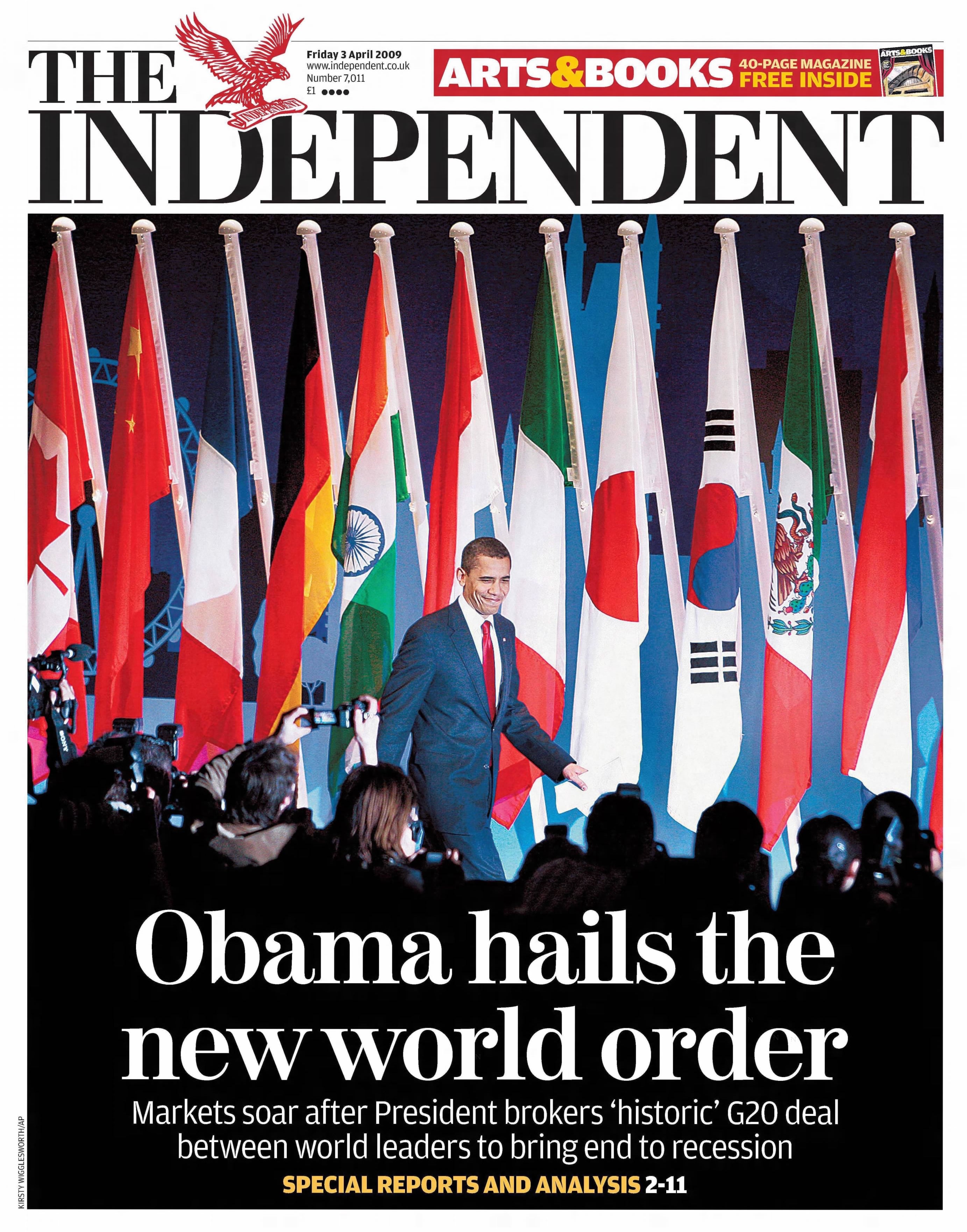 World leaders at the London G20 summit agree to inject $1 trillion into the global economy to combat the escalating recession. Economists widely credit this unprecedented, highly coordinated intervention with restoring market confidence and preventing a second Great Depression.