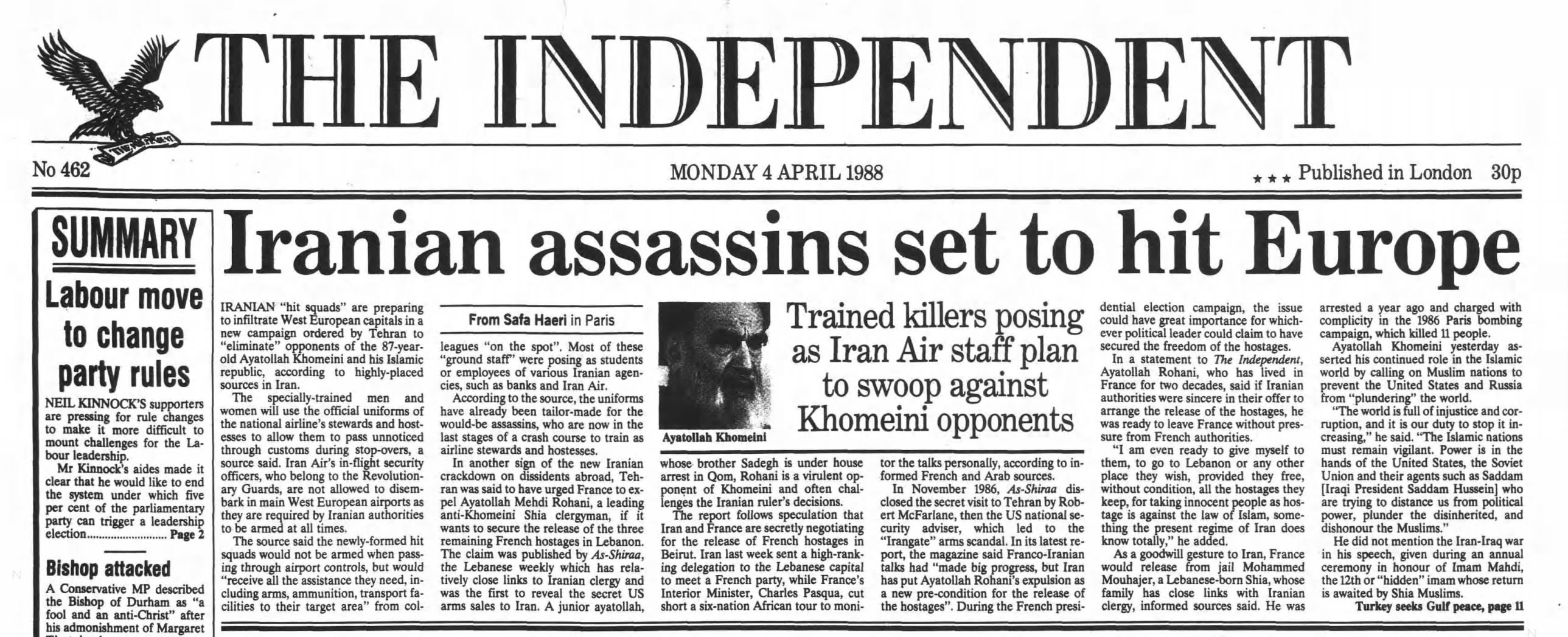 4 April 1988 – Iranian hit squads target Europe
