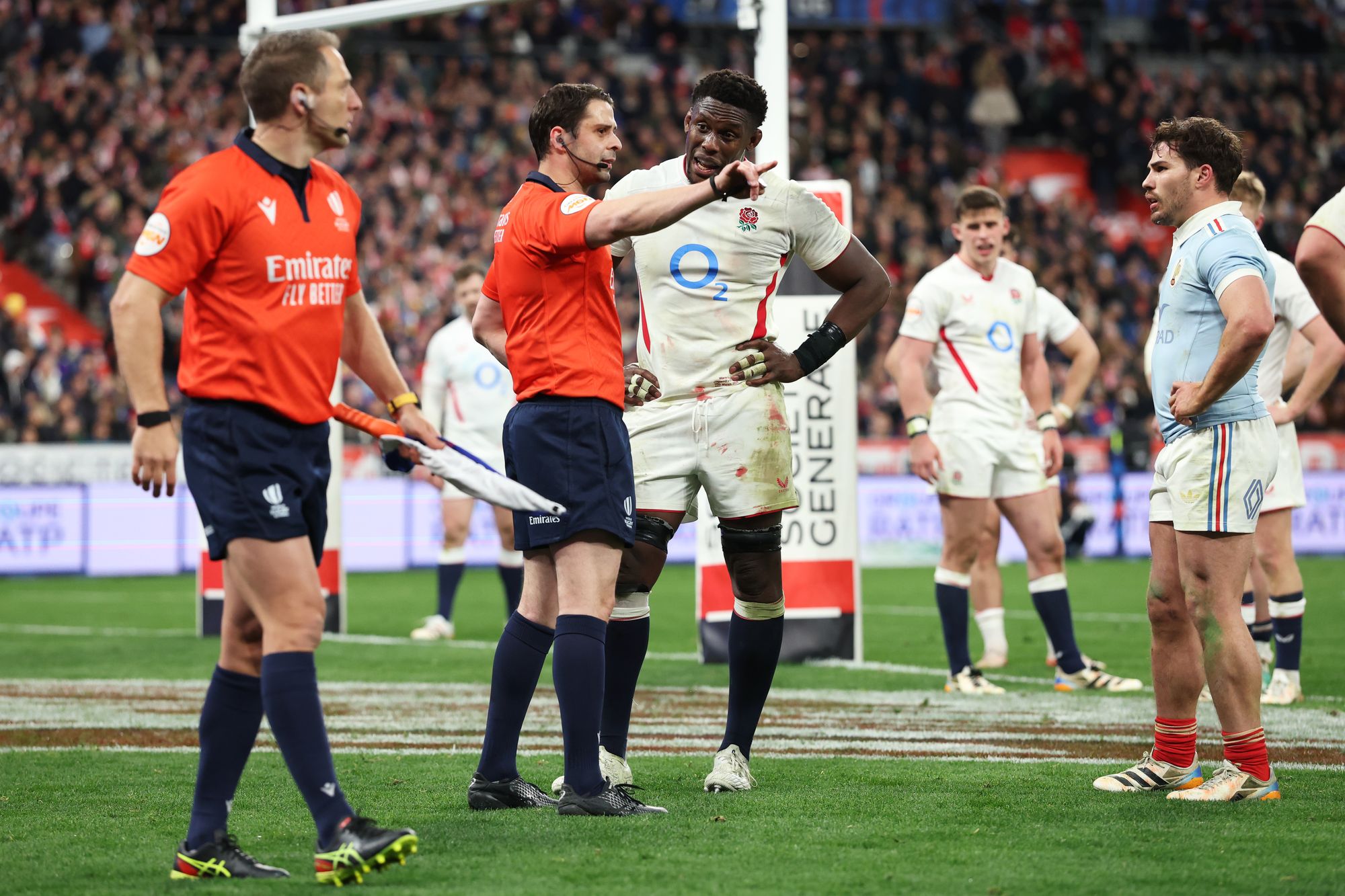 Three points from Smith’s right boot extended the visitors’ advantage to 10 points, but the ill-discipline that has plagued them throughout this campaign soon reared its ugly head. France advanced down the left touchline and Ellis Genge felt he had no choice but to haul down a maul a metre out. After the drive’s formation was ruled licit following an extended video investigation, there was only one outcome – a ninth yellow card of the campaign.