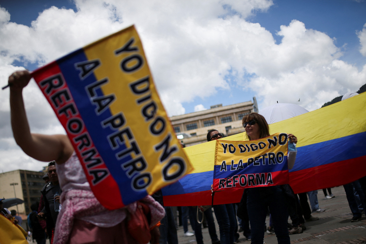 Thousands of protesters marched on Monday against economic and social reforms proposed by Colombian leftist President Gustavo Petro - which he says will fight inequality - just 50 days after he took office.