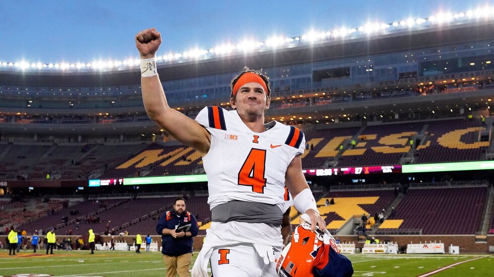 At 4-5, Illinois needs to win at least two of its three remaining games — at home against Indiana and Northwestern, with a visit to Iowa in between — to get to a second straight bowl game. That hasn’t happened since 2010 and 2011, the tail end of the Ron Zook era.