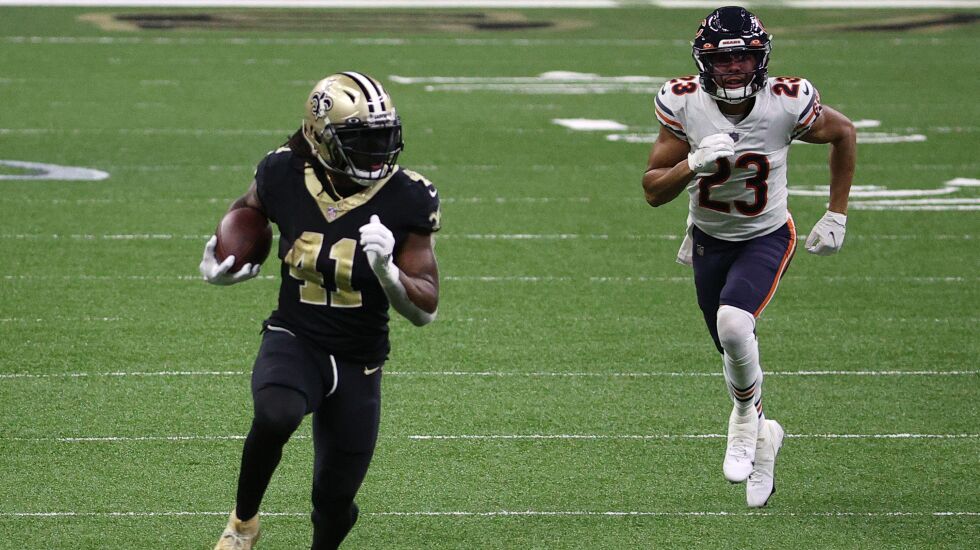 Since returning from suspension Oct. 1, Saints running back Alvin Kamara has totaled 39 catches for 228 yards. He’ll do the same thing as Ekeler — if the Bears let him.