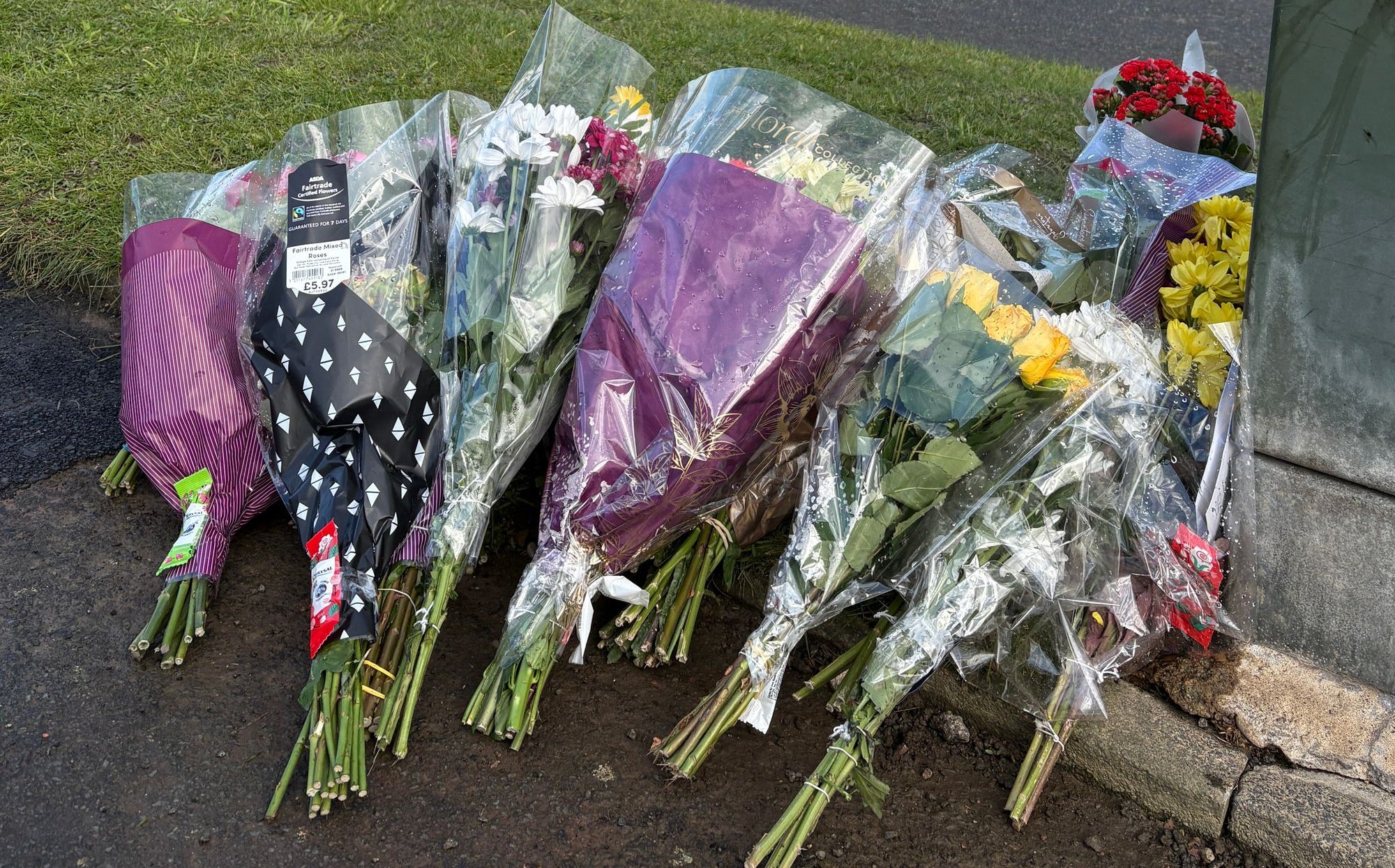 Flowers were laid in the quiet street of bungalows and scenes-of-crime officers in white protective clothing were seen going into one of the homes on Monday.