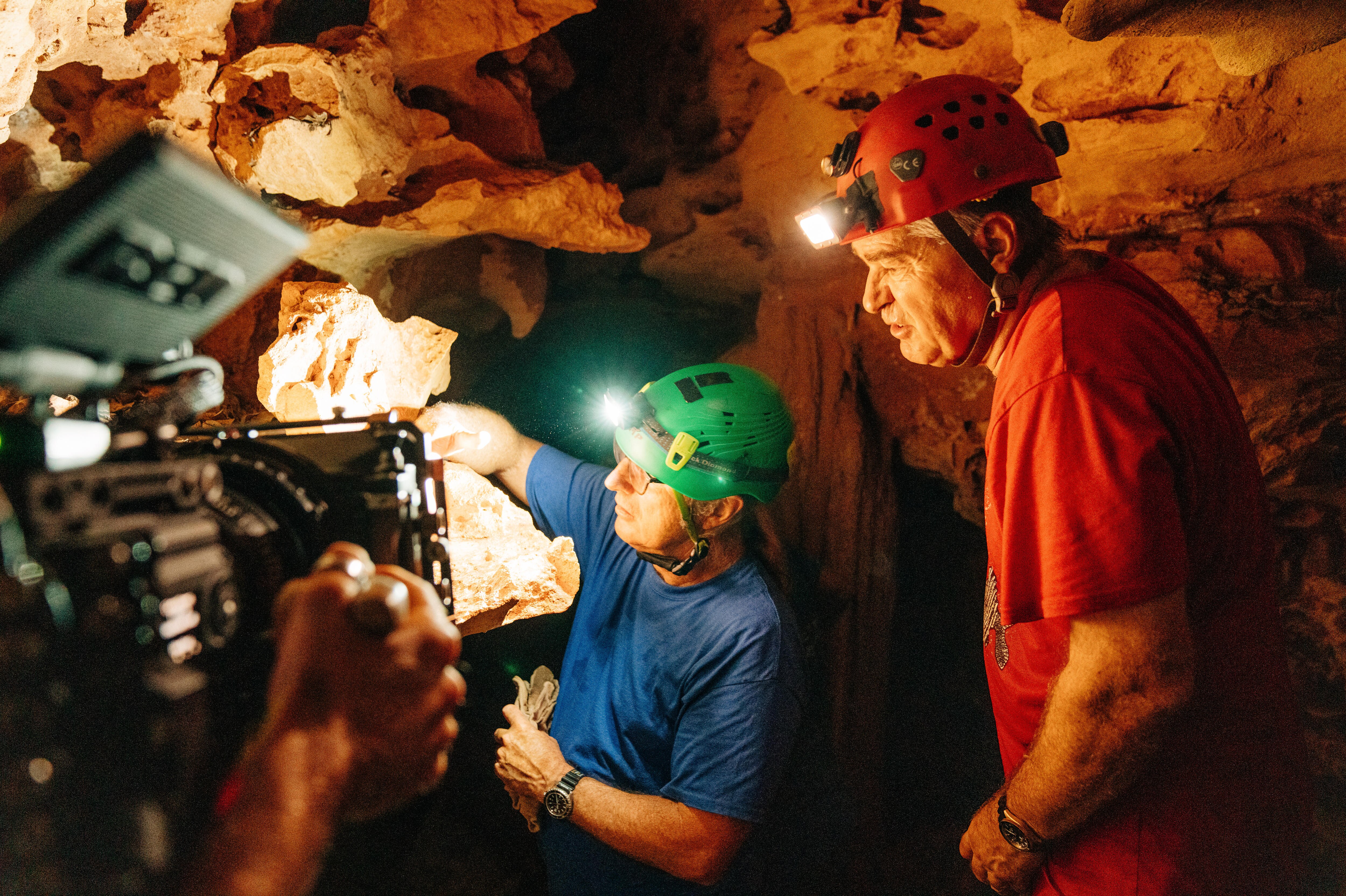 Working with about 100 experts — scientists, researchers and Traditional Owners – and with appropriate permits, their perseverance paid off and they captured some extraordinary moments – Winton picking parasites off the lips of a whale shark, cradling a 400-kilogram dugong in his arms while scientists tag it, and navigating a narrow underground cave to find the rare, tiny Blind Gudgeon fish.