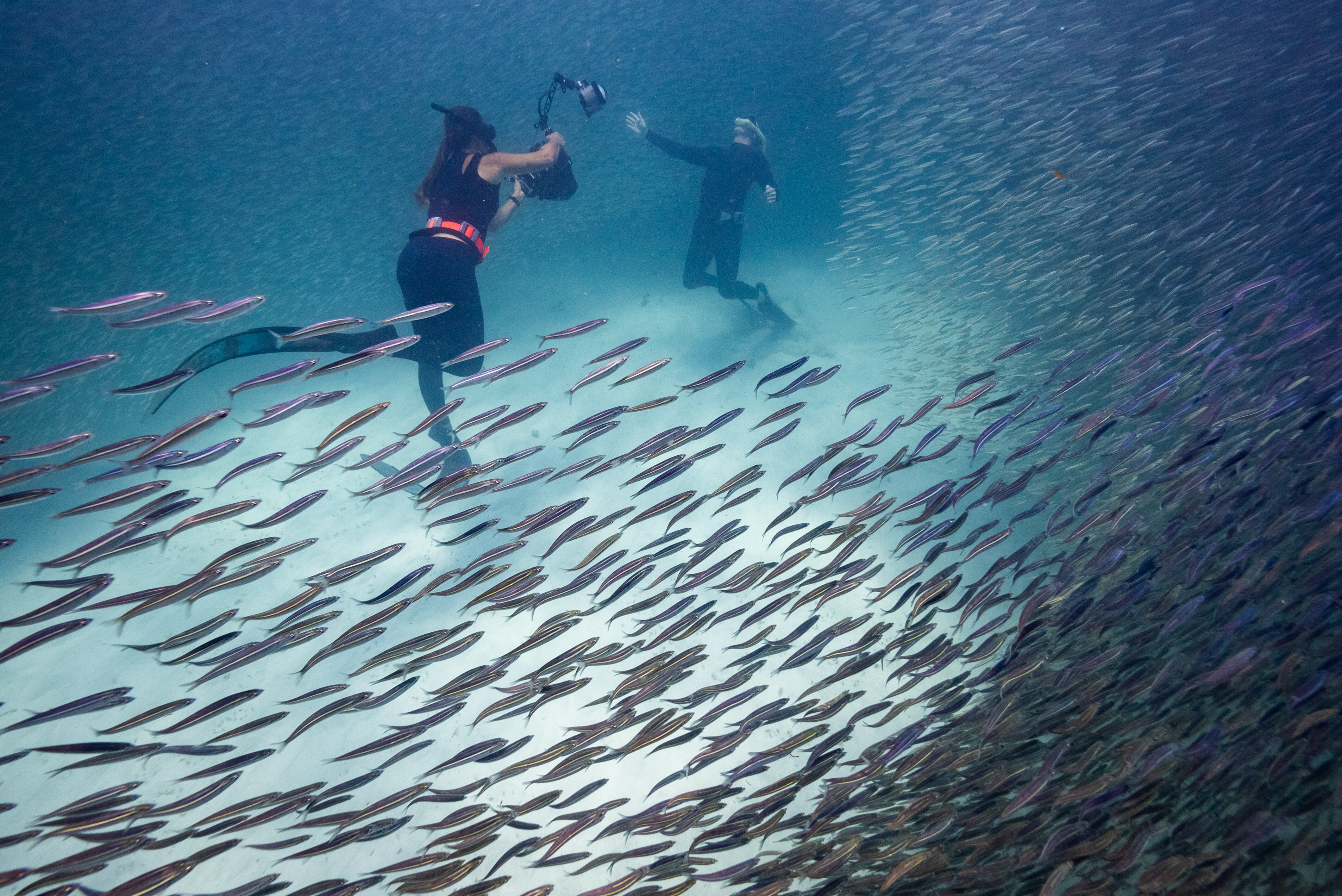 "Because it's a La Nina event the wind didn't blow [and disperse the spawn out to sea], it didn't go away and 15,000 fish died that week at that site alone. But that's the nature of the place, it's a wild place and it does wild things and it's really humbling. You are not in charge of anything that's going on. As filmmakers, you make all your plans, you've got all your lists, you've got all your gear, you're doing research about what is going to be in the water at this time and you just hope something shows up."