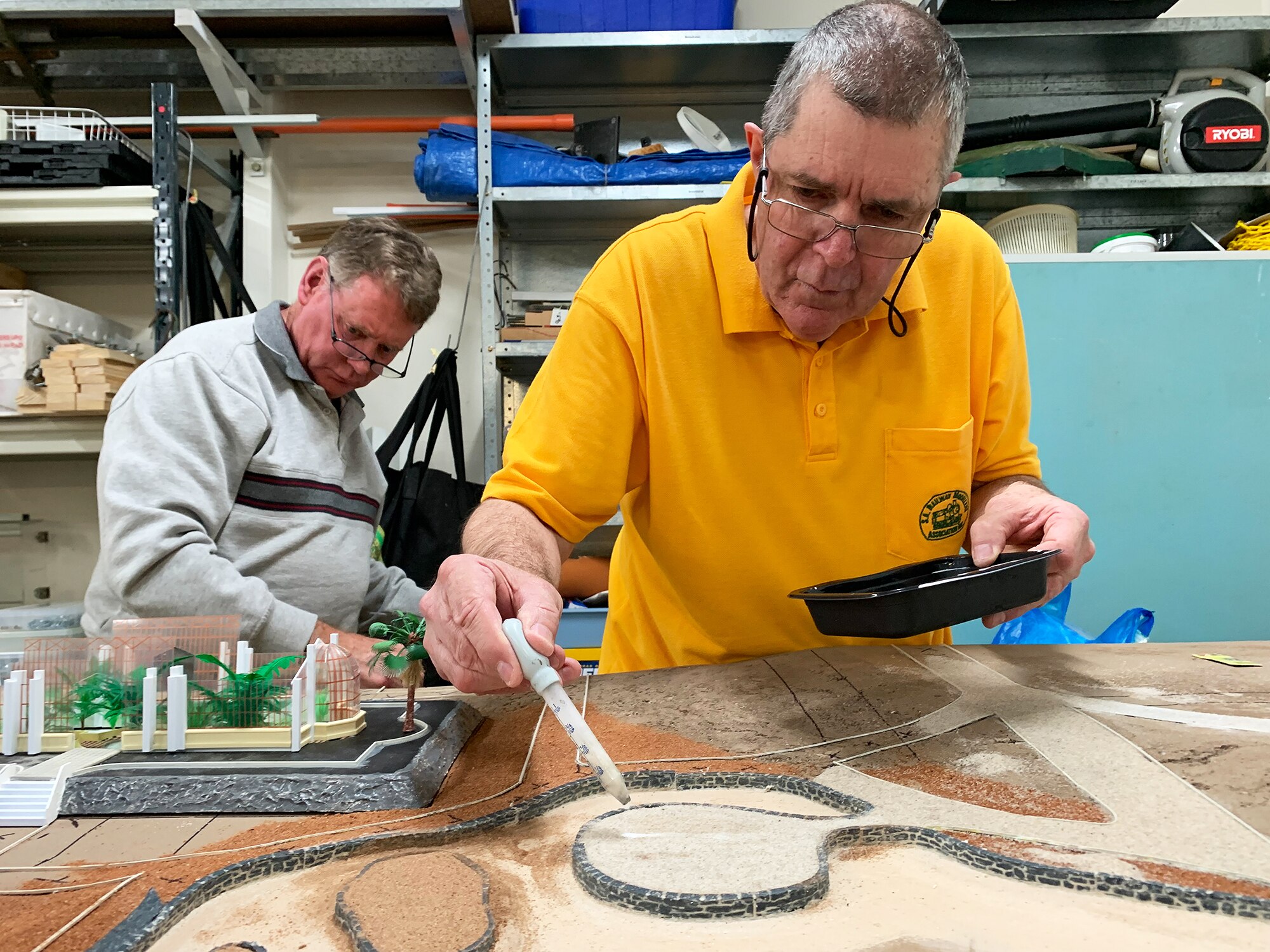 Tiny Oz turned to the South Australian Railway Modellers Association (SARMA), one of Adelaide's six model railway clubs, to recreate the scene in Adelaide's Botanic Gardens.