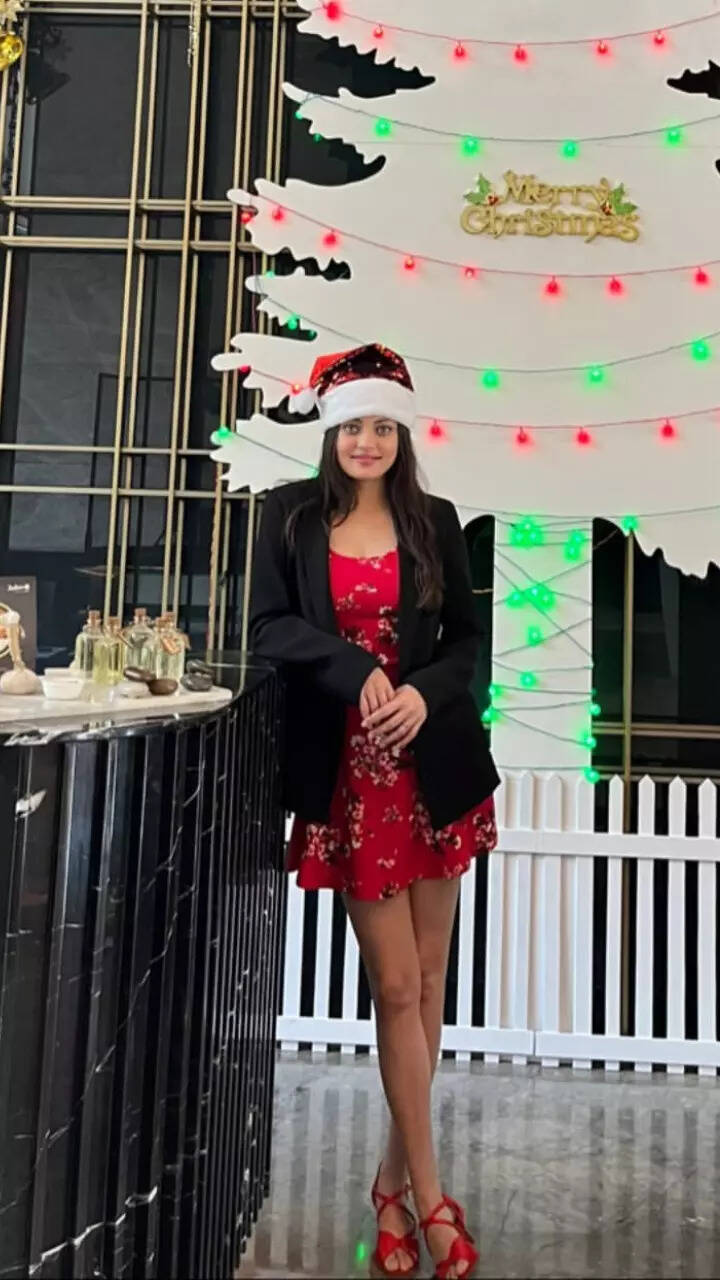 Kriti Kharbanda looks Christmas-ready in a Santa Claus dress.