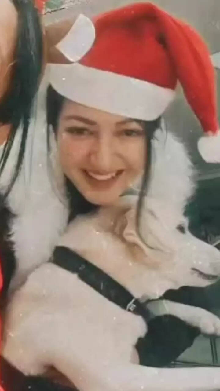 Sneha Ullal wore a floral printed red mini gown and covered it up with a black coat and wished everyone Happy Christmas.