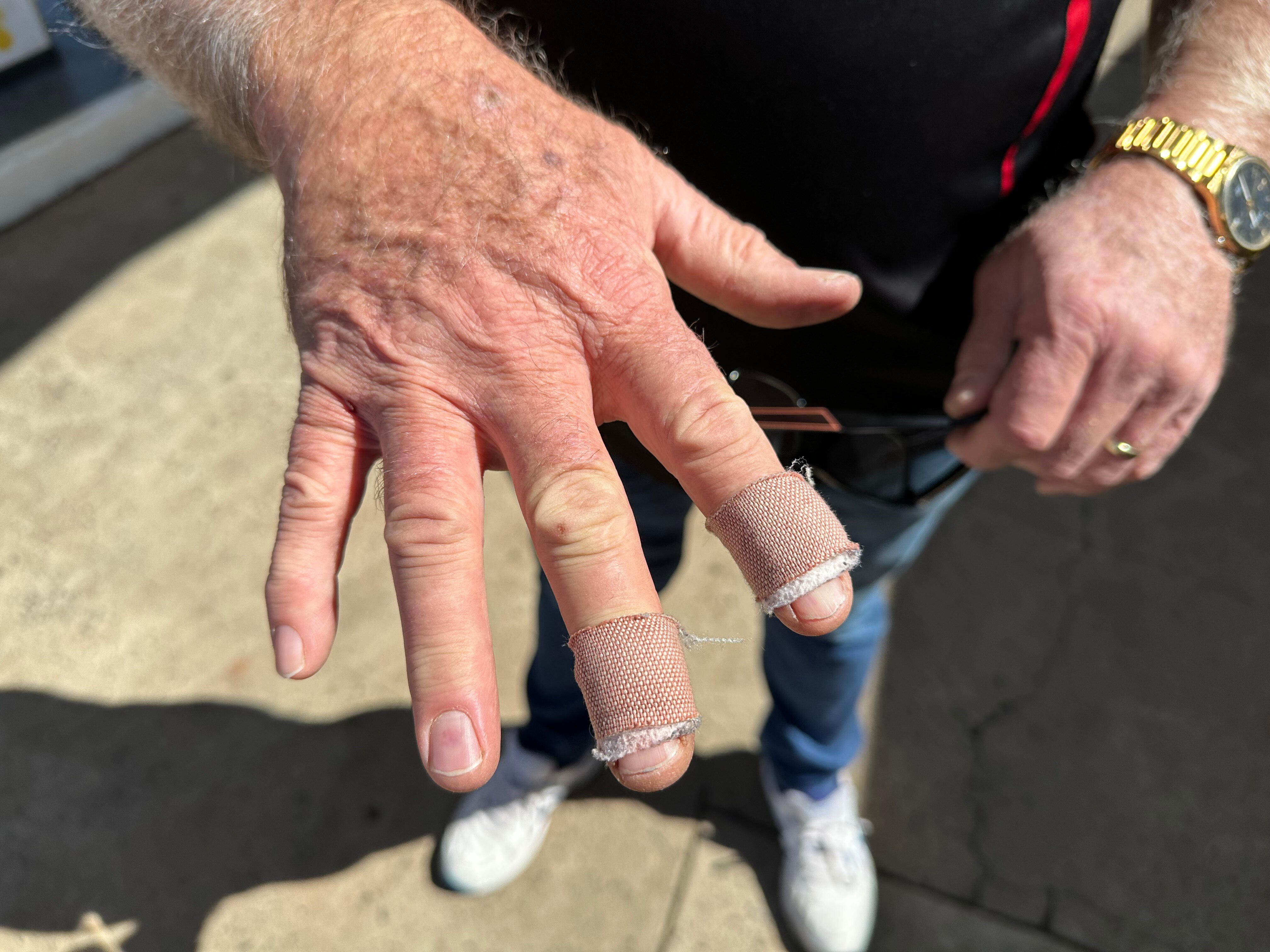 "I've got some bark off me hands, me fingers hanging on, my hands are a bit sore and that kind of business."