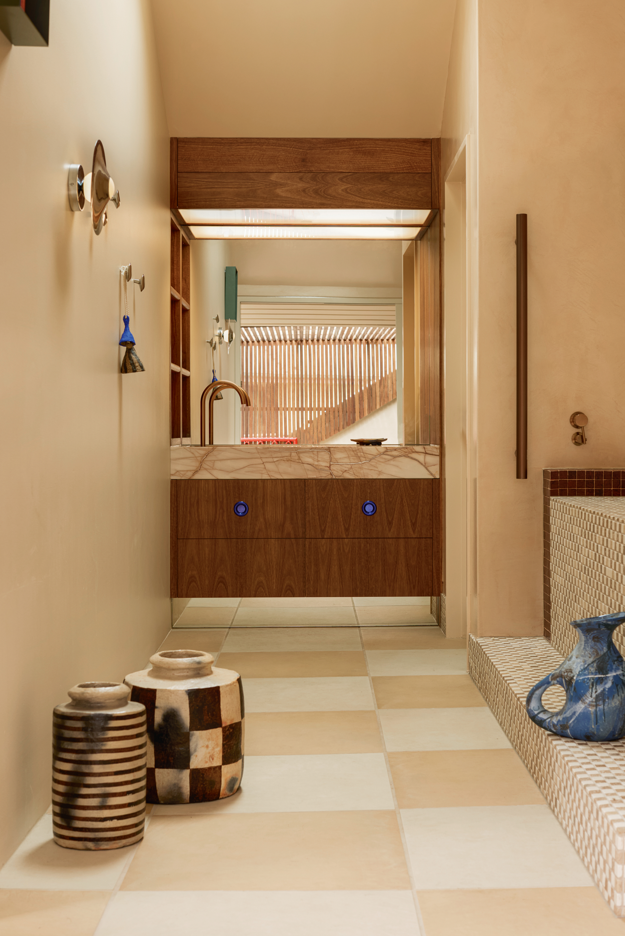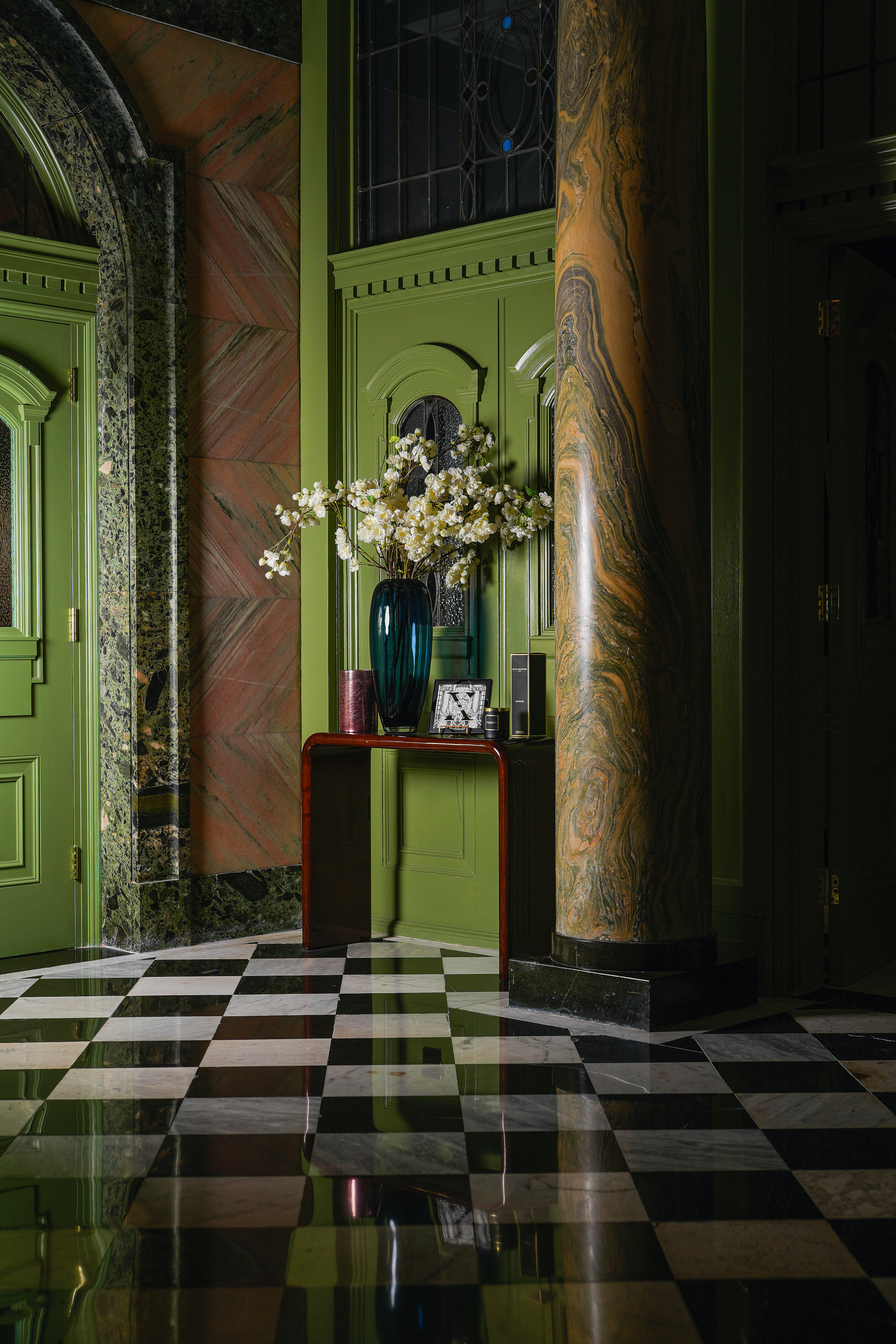 I'm rightly obsessed with everything 'drenching' right now, be it color, pattern, or tiles. Going head-to-toe with a hue, a print, or a material can imbue a space with a richness; a real sense of luxury, akin to a boutique hotel.
