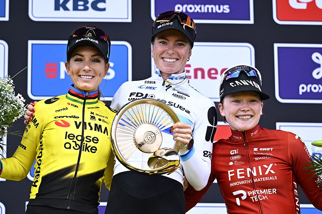 Starting and finishing in Oudenaarde, the women faced six flat cobblestone sections and nine climbs, seven of which were cobbled, on a 164.1km course snaking through the so-called Flemish Ardennes.