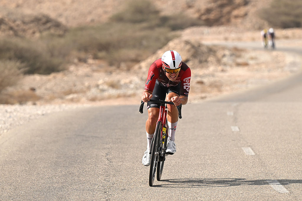 France's Baptiste Veistroffer (Lotto Intermarché) claimed his first victory as a professional on stage 2 of the Tour of Oman, attacking from the early break on the penultimate climb with 10km to go and holding off the bunch all the way to the line.