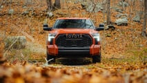 Toyota recently trademarked the TRD Hammer name, first discovered by The Drive. This could be the name for the Tundra designed to compete with the Raptor. According to a “friend” of the publication, this pickup will have 37-inch tires and be “badass.” Spy shots caught Toyota testing a rugged-looking Tundra with knobby tires, a raised ride height, and off-road-style bumpers.