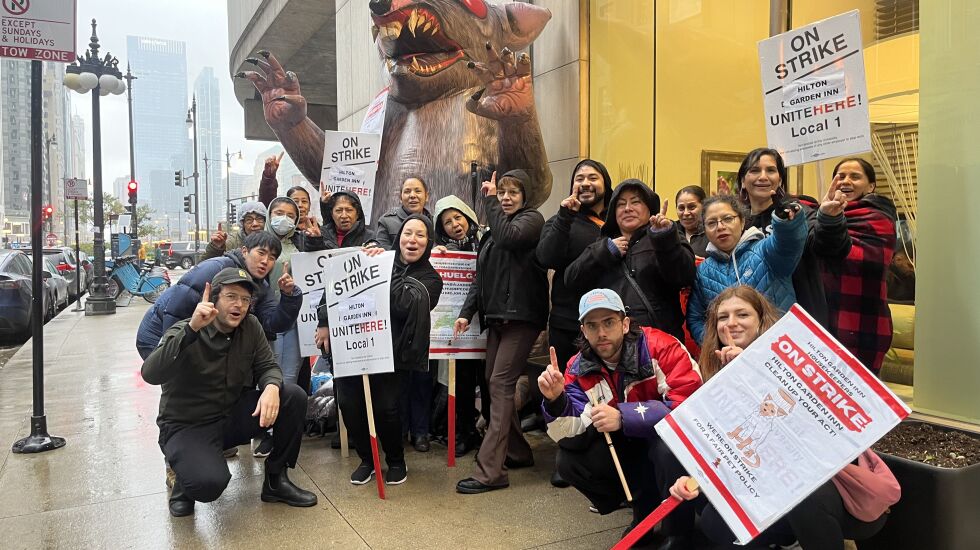 Trabajadoras de limpieza del hotel Hilton Garden Inn Downtown Chicago Riverwalk se declararon en huelga el domingo por la mañana exigiendo una “política de mascotas justa”.