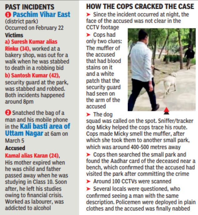 NEW DELHI: There wasn’t much the cops had to go with when an unknown suspect robbed one man and killed a walker in a park in west Delhi.