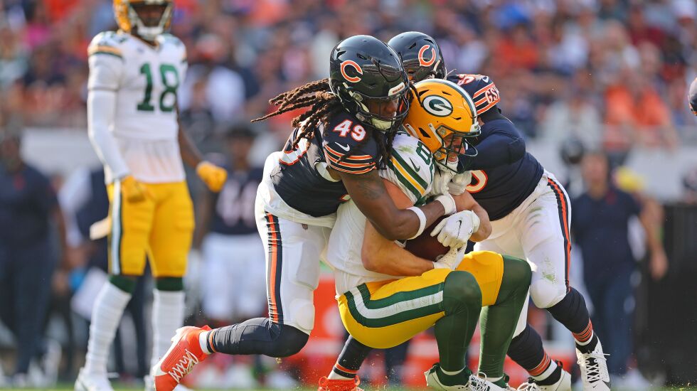 But, like Edmunds, he’s already lost as many games with the Bears as he did in the regular season last year. Edwards also has been a solid tackler with the Bears — he leads them with 31 in three games. But, like Edmunds, the big-play impact hasn’t been there.
