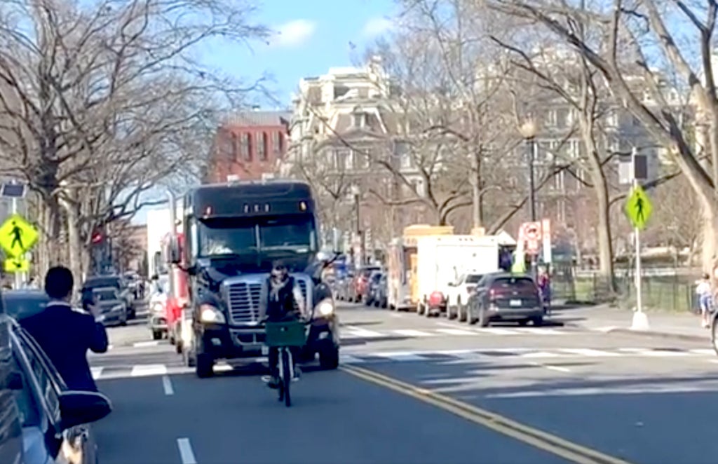 The People’s Convoy trucker protest was reduced to a slow crawl in Washington DC on Saturday by one man on a bike.