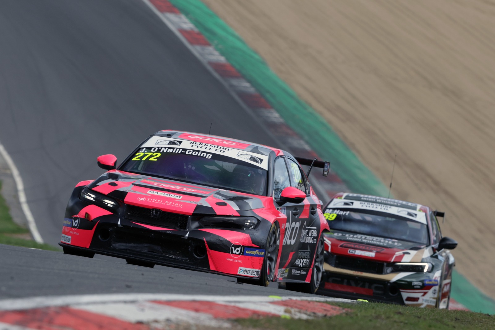 Race two went to O’Neill-Going under intense pressure from fellow Honda Civic pilot Max Hart – the youngster’s driver coach mentor in the past - with Newsham third from the back of the grid. Newsham was first to the chequered flag in race three chased by Brad Hutchison and Carl Boardley, another driver suffering a problematic weekend. O’Neill-Going was bumped out of a podium position in a bruising encounter.