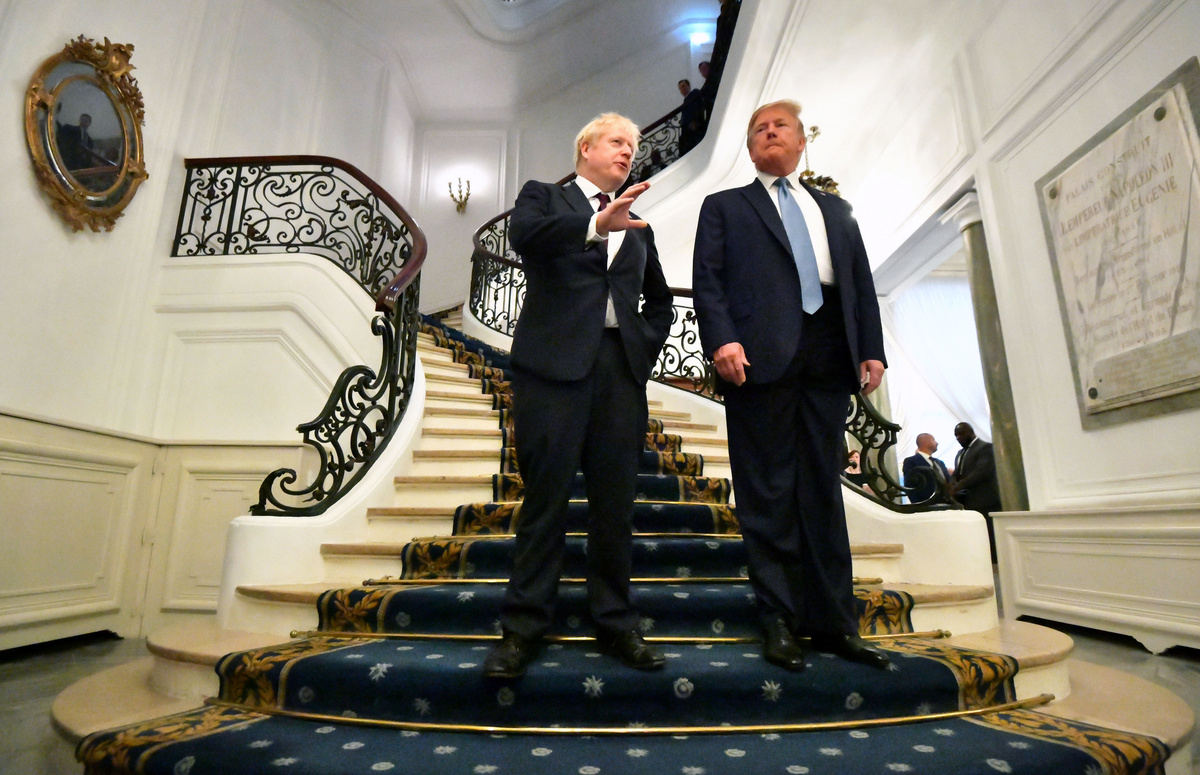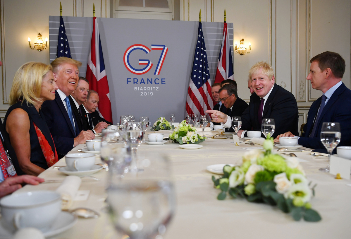 Britain's Johnson voiced concern on Saturday about creeping protectionism and said those who support tariffs "are at risk of incurring the blame for the downturn in the global economy". Sitting across from Trump on Sunday, he said: "We're in favour of trade peace on the whole, and dialling it down if we can."