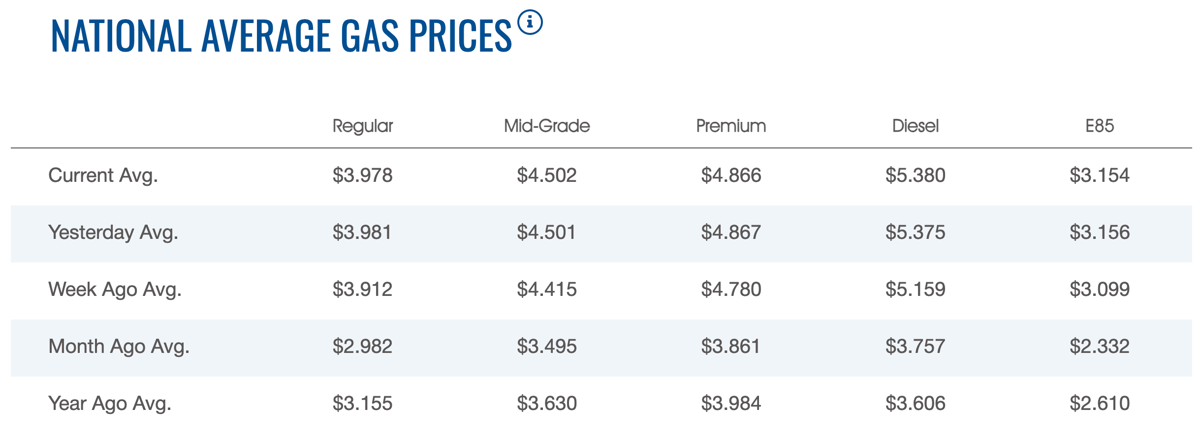 The latest data from the American Automobile Association shows the average cost of regular fuel across the U.S. has risen by almost.