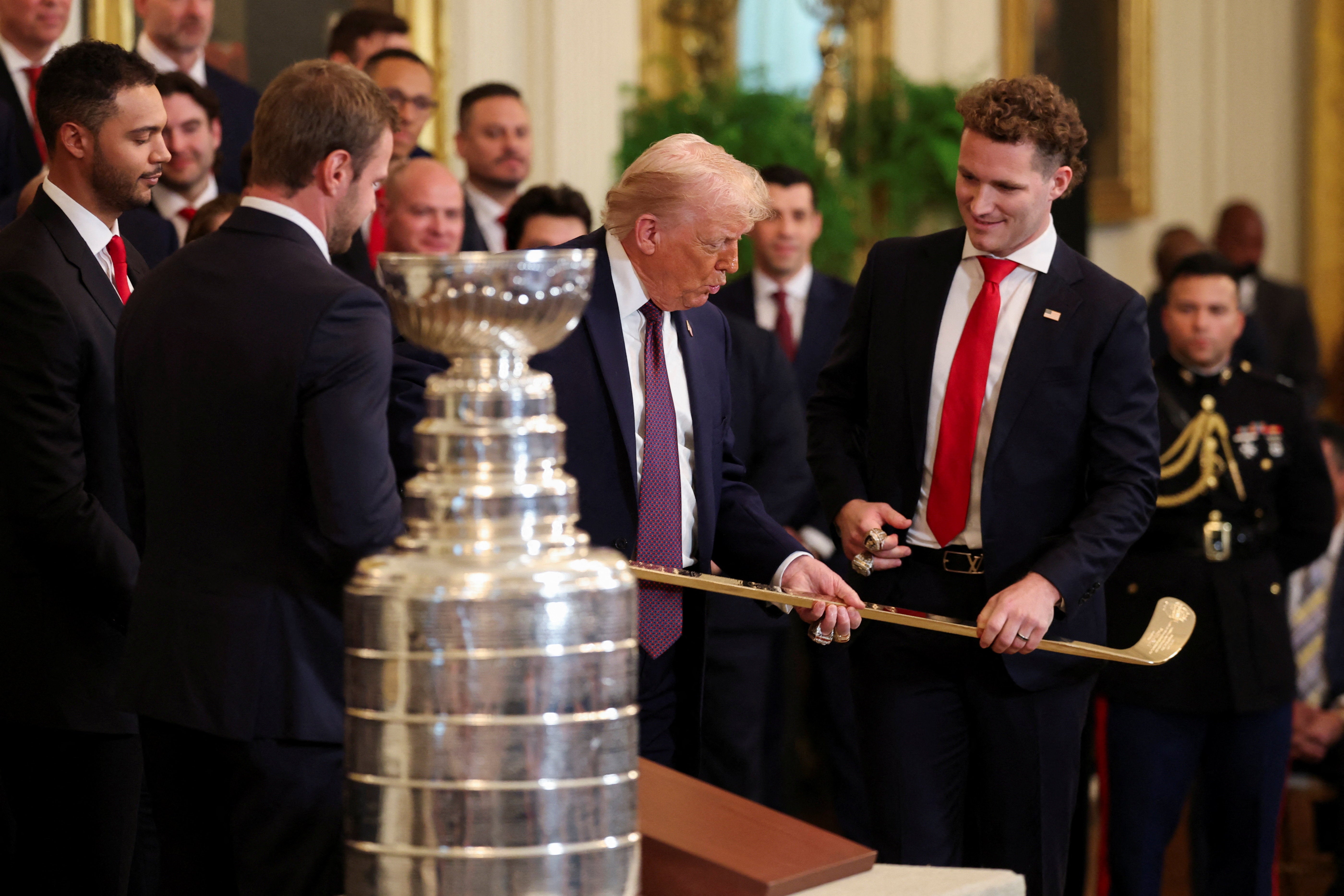 “Good-looking people,” Trump said of the 2025 Stanley Cup winners. He then joked, “I hate them.”