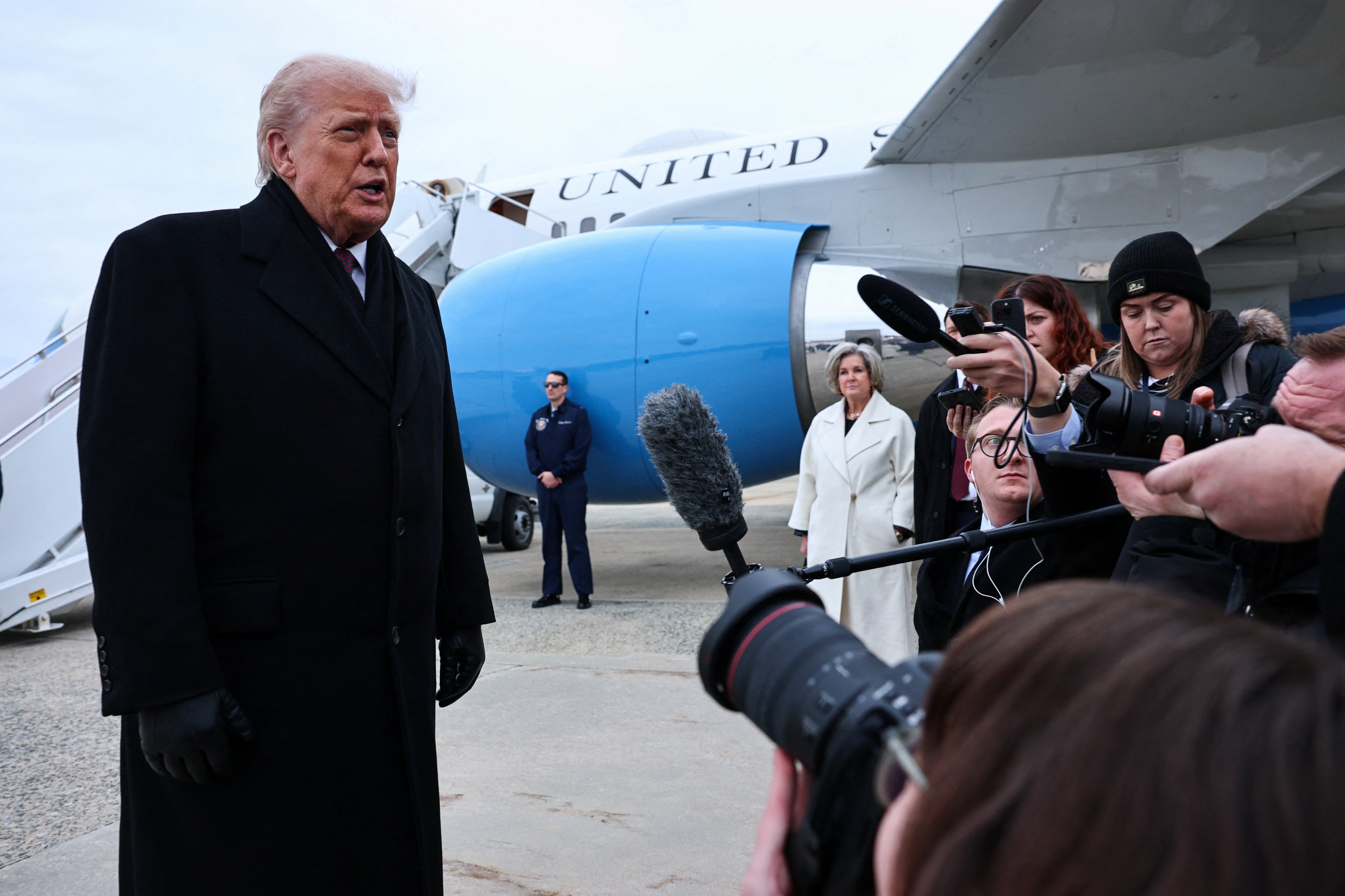 Wednesday 17 December 2025 20:15 , Alex WoodwardTrump was joined by Defense Secretary Pete Hegseth and Ioa Governor Kim Reynolds, among others, as caskets carrying the bodies of two Iowa National Guard service members arrived at Dover Air Force Base.