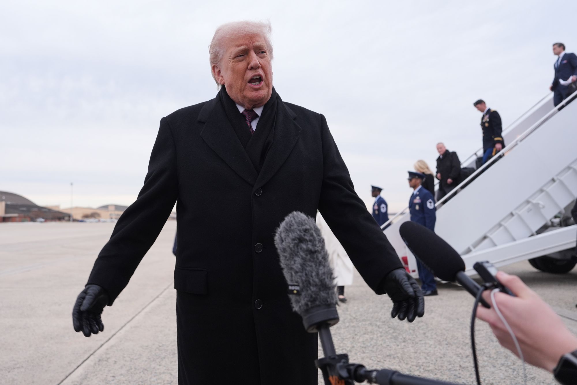 Wednesday 17 December 2025 19:58 , Alex WoodwardDonald Trump and administration officials have arrived at Dover Air Force Base in Dover, Delaware during a dignified transfer of the remains of two Iowa National Guard members killed in Syria.